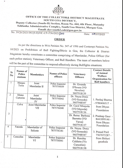 Home Uncategorized South Goa Collector forms teams to curb illegal bullfighting Uncategorized South Goa Collector forms teams to curb illegal bullfighting By Digital Goa - July 9, 2025