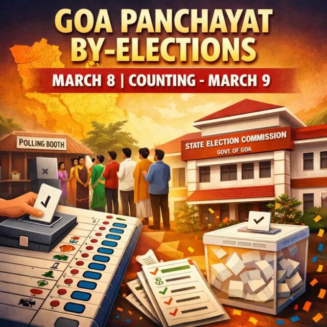 Digital Goa, Feb 16 – The State Election Commission has announced by-elections to 14 wards of various village panchayats across Goa. Polling will be held on March 8, while counting of votes and declaration of results will take place on March 9. The by-elections will be conducted in Ward No. I – Chandel-Hasapur, Ward No. IV – Mandrem, Ward No. VII – Piligao, Ward No. III – Latambarcem, Ward No. I – Pilerne Marna, Ward No. VI – Sirsaim, Ward No. II – Salvador Do Mundo, Ward No. I – Candolim, Ward No. VI – Aquem Baixo, Ward No. I – Borim, Ward No. III – Veling Priol, Ward No. III – Bhoma Adcolna, Ward No. VIII – Balli Adnem and Ward No. VIII – Loliem Polem.