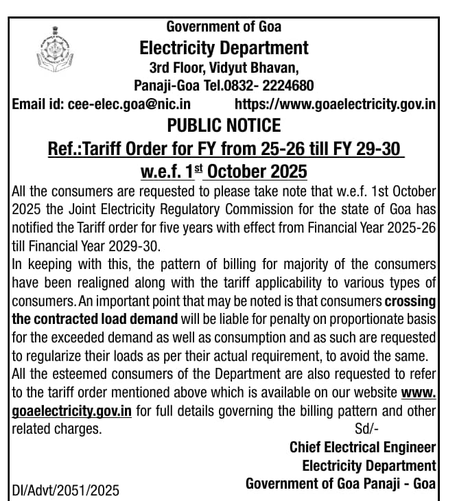 Consumers exceeding contracted load to face penalties warns Goa Electricity Department