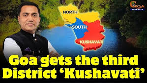 Digital Goa, Dec 31- State Revenue Dept has notified the formation of the third district named Kushavati by reconstituting the State of Goa into three districts.