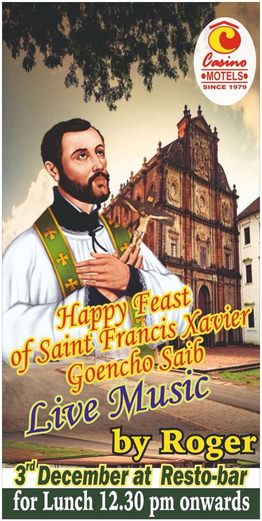 Home Uncategorized Happy Feast of Saint Francis Xavier Goencho Saib Uncategorized Happy Feast of Saint Francis Xavier Goencho Saib By Digital Goa - December 2, 2025 Live Music By Roger3rd December at Resto-barFor lunch12:30pm onwardsAt Casino Motels Alto Porvorim.