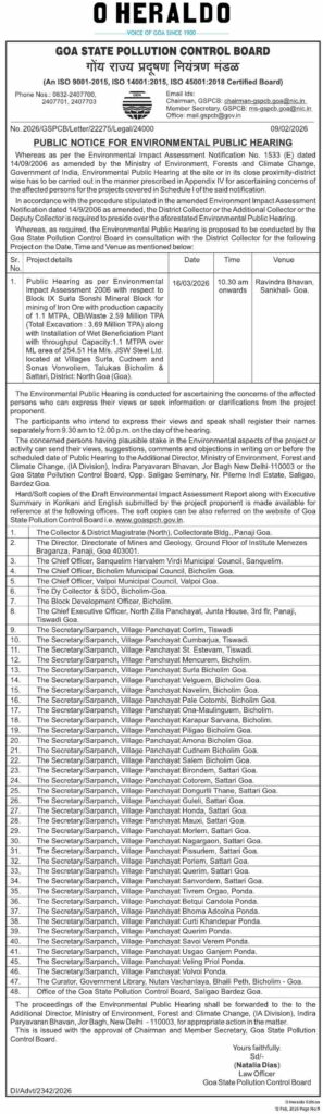 Home Uncategorized Public hearing on JSW’s Surla-Sonshi mining project on March 16