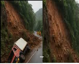 Truck plunges off road in Chorla ghat landslide, driver escapes unhurt
